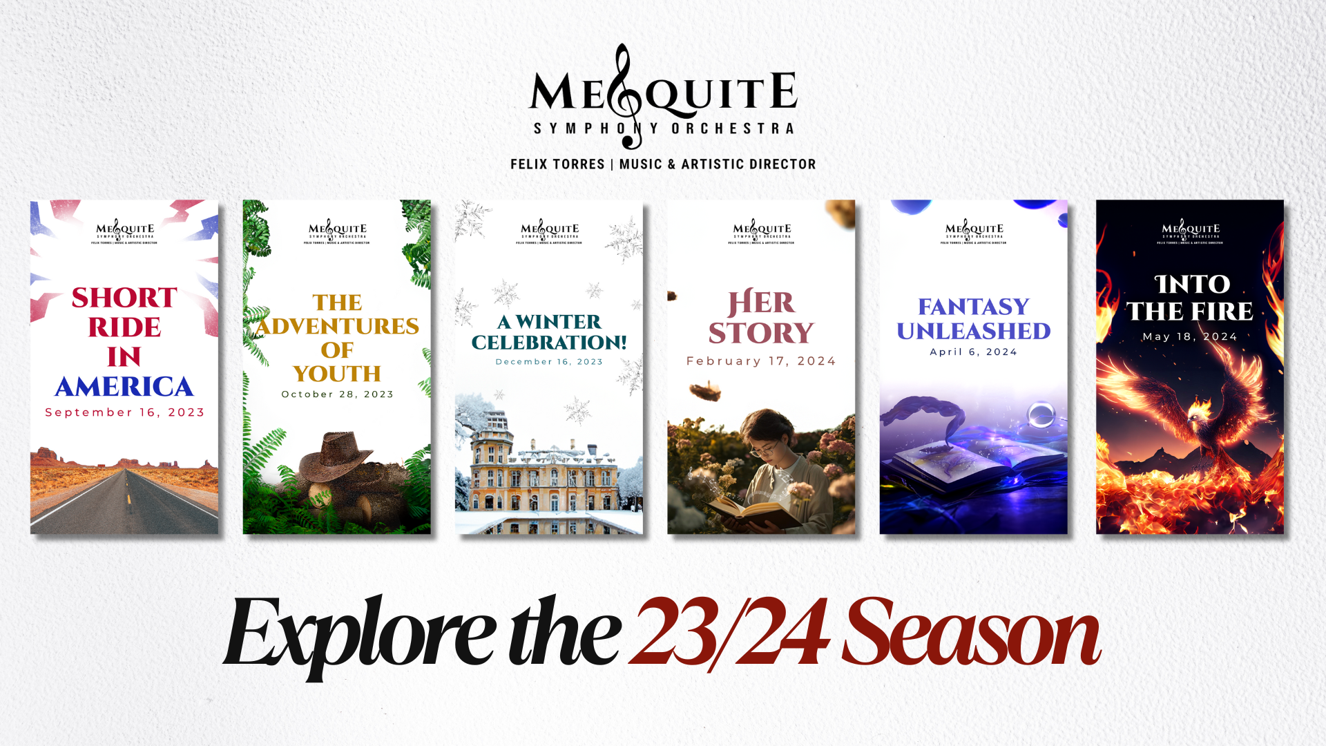 Into The FireSaturday, May 18, 2024, 7:30 PM CentralMesquite Arts Center Buy In-Person Tickets Buy Livestream Tickets Concert Program Explore the 23/24 Season. Explore Learn more about the MSO Learn More New to the Mesquite Symphony Orchestra? Let’s stay in touch and we’ll let you know what’s coming up.